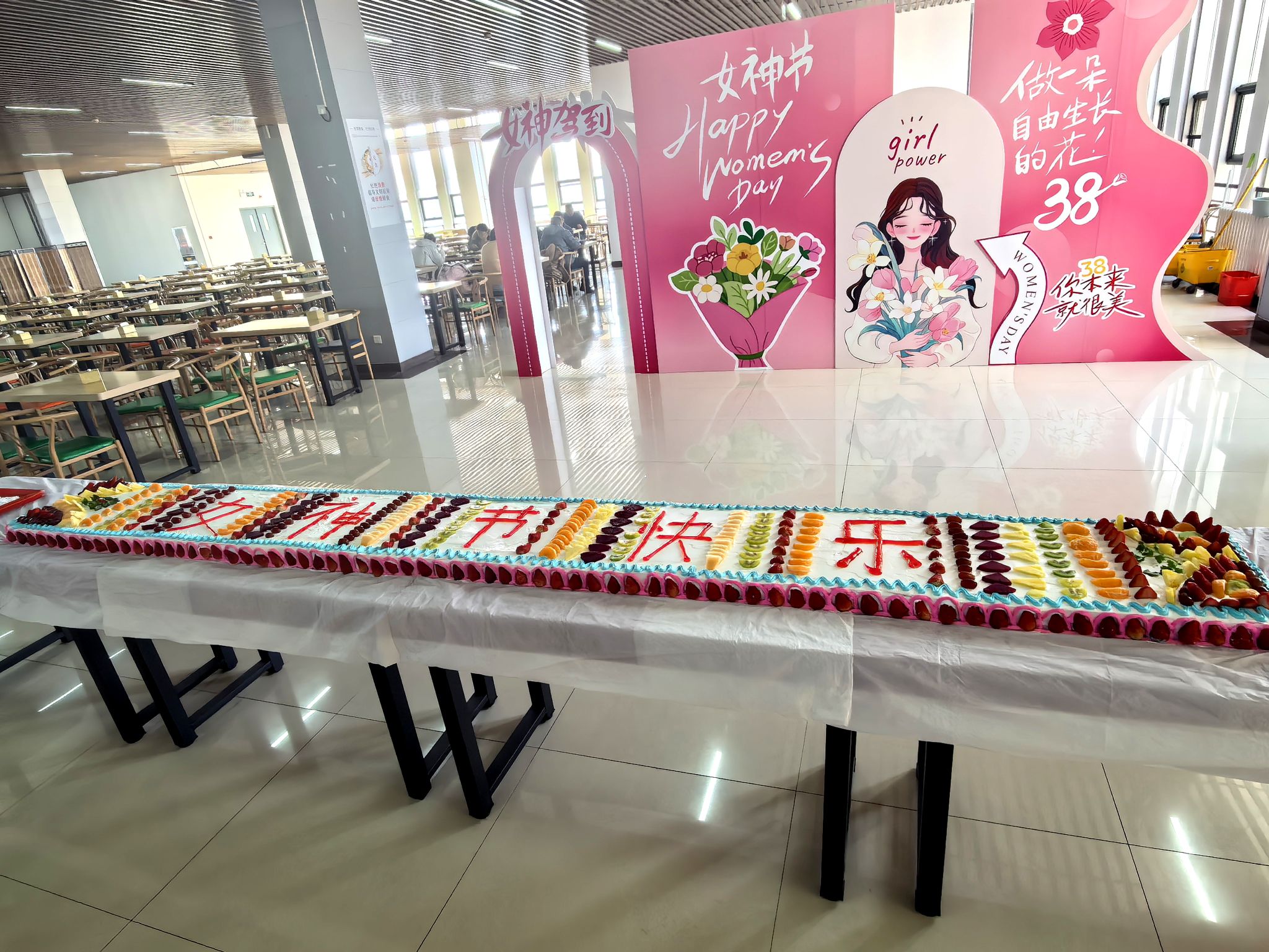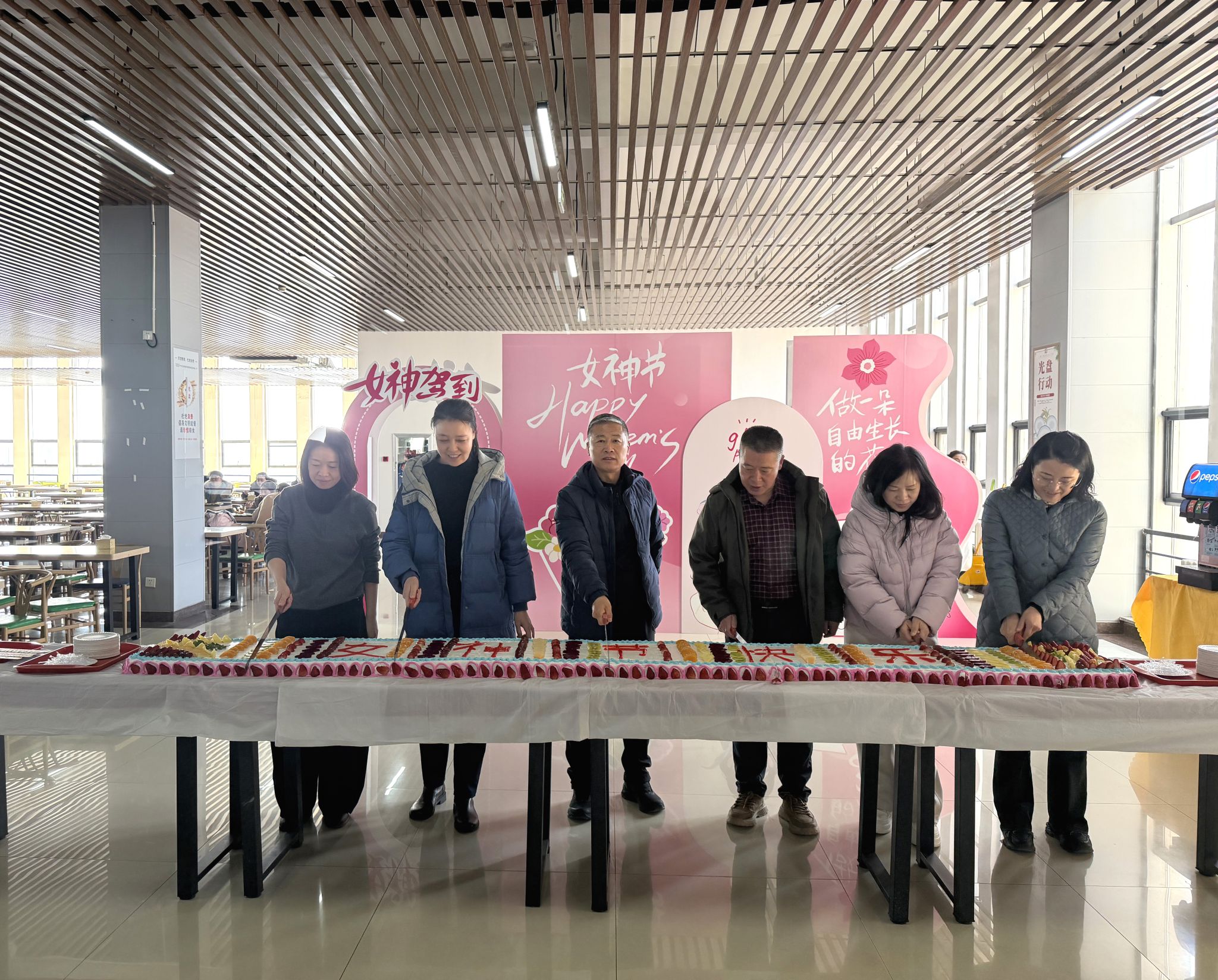 舌尖甜蜜添暖意,食堂献礼暖人心。3月6日中午教职工午餐时段,工会联合后勤保障处在教职工食堂开展暖心慰问活动,为全体就餐女教职工免费送上精致节日蛋糕,香甜滋味搭配温馨布置,让女教职工在忙碌工作间隙,感受校园大家庭的贴心关怀,用餐现场暖意融融、笑意盈盈。
