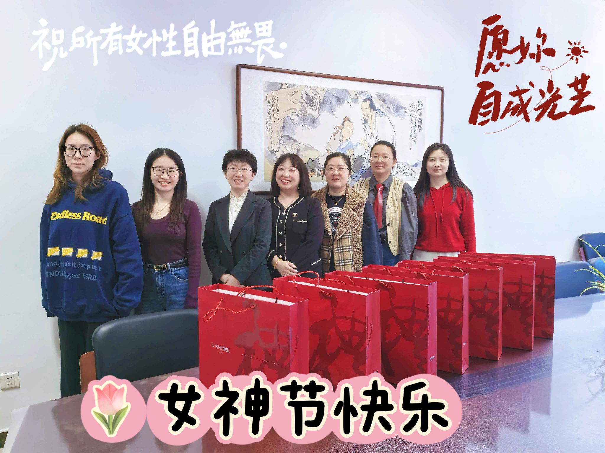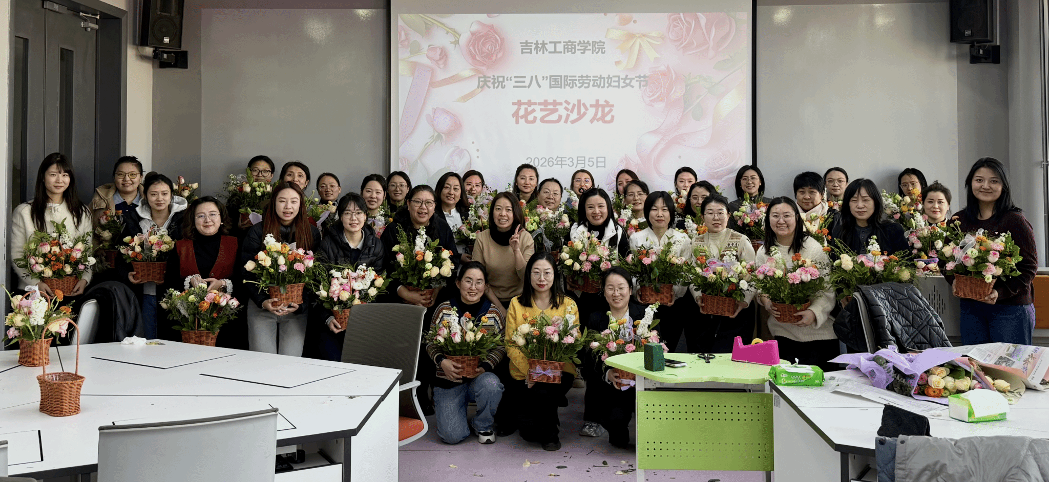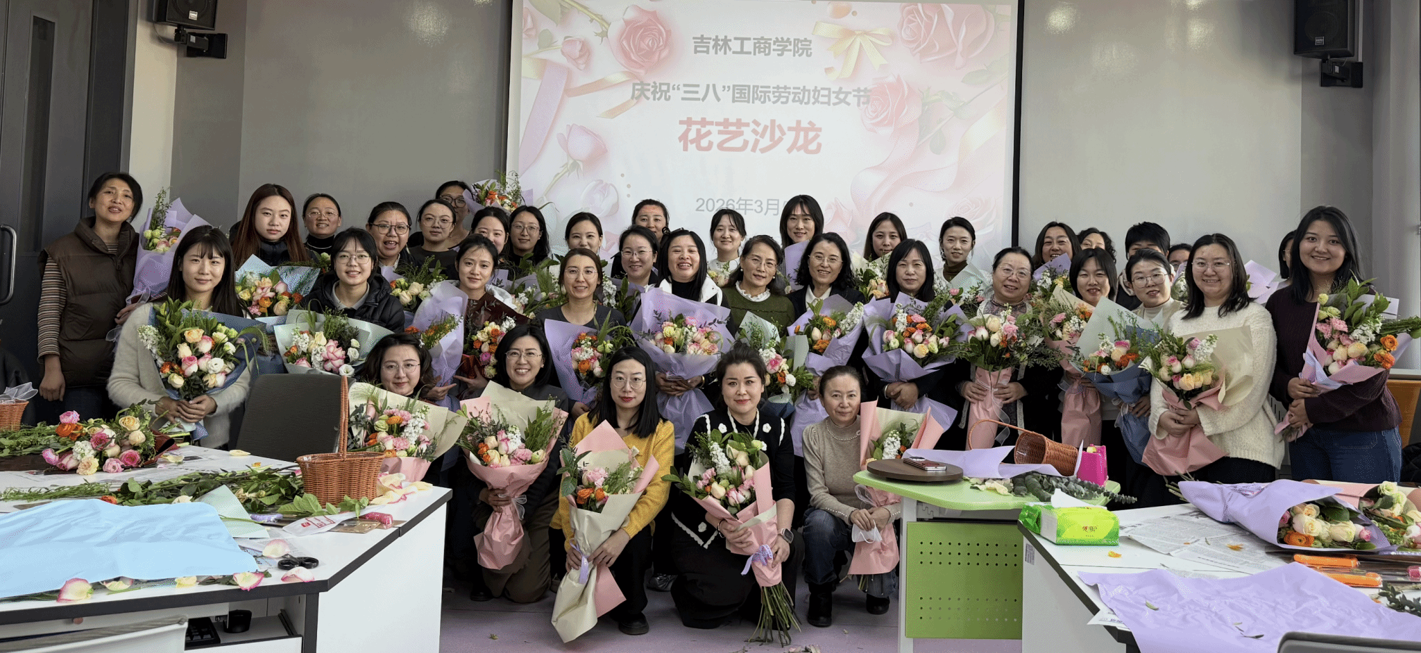 为进一步凝聚巾帼力量、传递组织温暖,各分工会也精心策划开展了丰富多彩的主题活动,向教职工送上节日的祝福与关怀。分工会的活动现场暖意融融,大家欢聚一堂、合影留念,脸上洋溢着幸福的笑容。分工会还组织了鲜花赠巾帼活动,将盛放的花束送到女教职工手中,用芬芳与美好致敬她们在教学、科研、管理等岗位上的辛勤付出与无私奉献,致敬每一位在岗位上勇毅担当、绽放光彩的女性工作者。